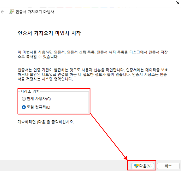 3) '로컬 컴퓨터' 클릭 → 다음 클릭