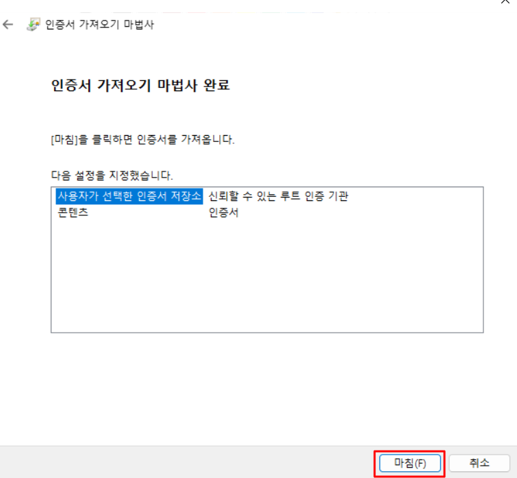 → '찾아보기' 클릭 → '신뢰할 수 있는 루트 인증 기관' 클릭