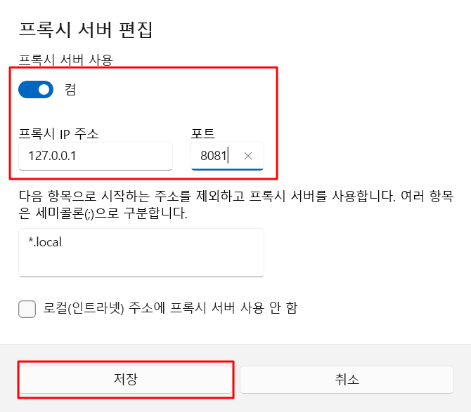 2.3 윈도우 프록시 설정