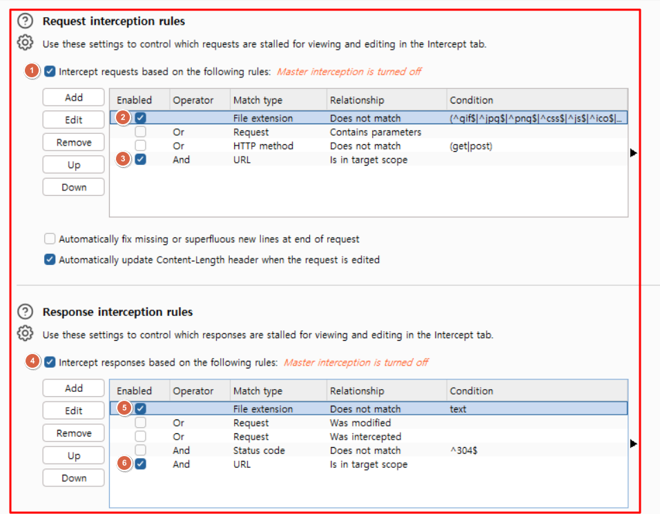 2.2.2 Request interception rules & Response interception rules