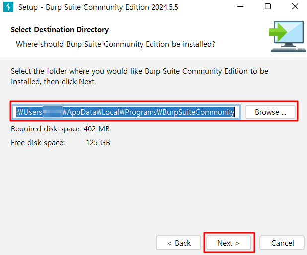 4) 설치 위치를 정해준 후 Next 버튼 클릭. 난 기본 위치를 사용했다.
